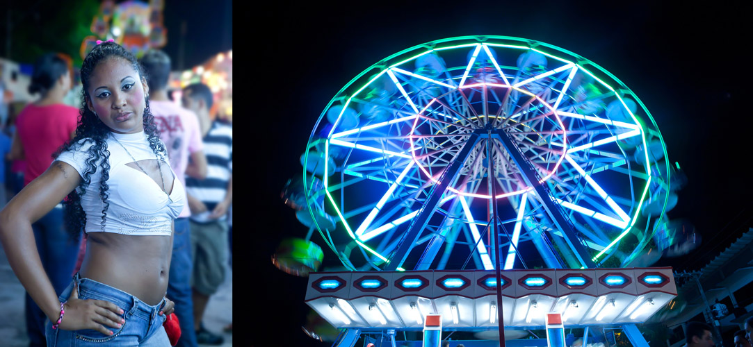 Na época do Círio de Nazaré, os arredores de Belém ficam cheios de entretenimento paralelos às festividades religiosas. Um desses locais é o parque de diversões. Os dípticos desta série foram expostas no Centro Cultural Wurth em 2011.